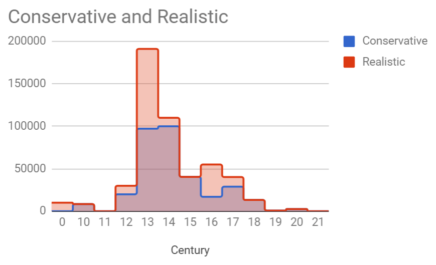 The list indicates a conservative and realistic number of casualties. So we took the time to calculate the total amount of casualties per century.