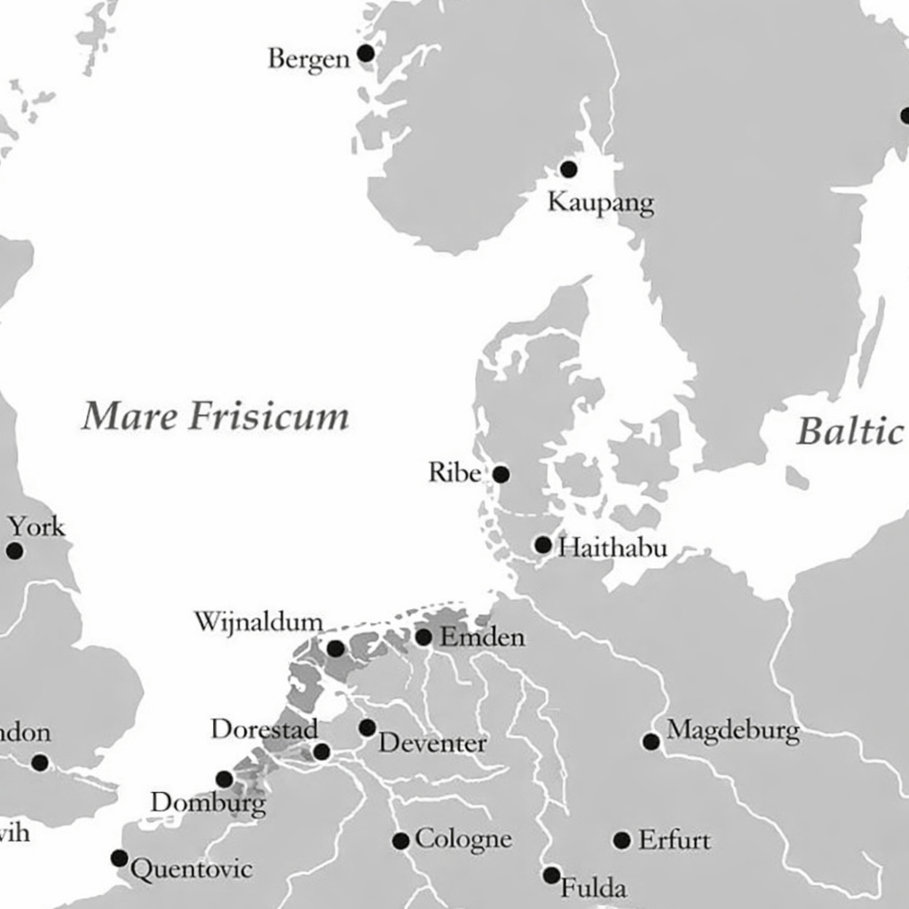 Early-medieval Frisia encompassed the lands, islands, and waters between the mouth of the River Scheldt in the southwest of the Netherlands and the mouth of the River Weser in the northwest of Germany. It also included the region of Nordfriesland, bordering the lands of the Danes in the north. The coast stretched for hundreds of kilometers, with sandy, muddy, and peaty terrain that was difficult to traverse. Geographically, this coastline was centrally located between the Dena lagunema (‘Danelaw’) on the British Isles to the west, and Denmark, as well as southern Norway and Sweden, to the east and northeast.