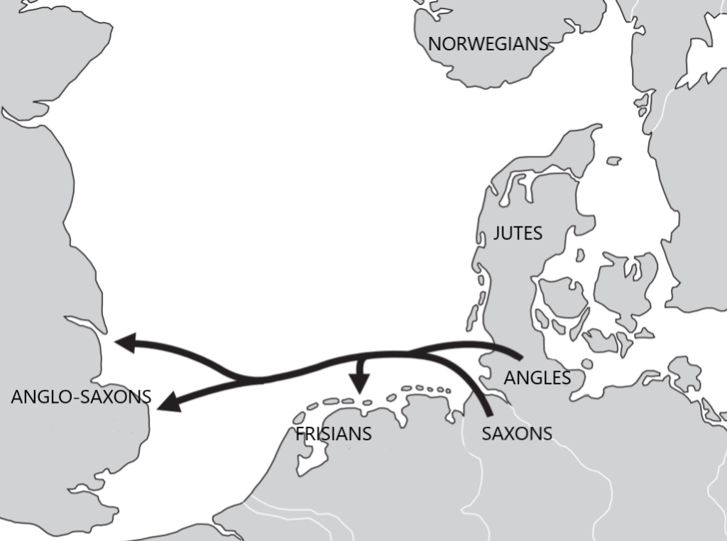 The first migration wave was that of the Angles and the (Old) Saxons at the turn of the fourth and fifth centuries. In particular, the Elbe-Weser triangle in northern Germany was an important cradle of the new settlers. Probably the Saxons admixed with the very few original Frisians (Frisii, both minores and maiores) and Chauci left. This first wave was, in archaeological terminology, a mass migration. Especially relatively speaking, since the tidal marshlands where these migrants settled were nearly empty indeed. Furthermore, these new settlers were not real strangers. Cultural relations, as explained earlier, already existed before the Migration Period. More or less belonging to the same cultural group. It is this same first migration wave that also affected Britain. Basically, the Saxon migrants followed the River Thames from Kent to Oxfordshire, and the Angles migrated via the River Humber into the northern Midlands and Yorkshire (Kortlandt 2017).