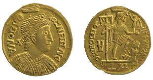 A gold solidus, probably from the first quarter of the sixth century, and for numismatic reasons as the date 423 ante quem non (‘not older than’), carrying the Anglo-Frisian runic inscription ᛋᛣᚨᚾᛟᛗᛟᛞᚢ skānomōdu, testifies to the early contact of the (new) Frisians with England. It is in the Frisian language, meaning something like skauna ‘beautiful’ mōda ‘brave’, and is probably a male first name. The oldest British runic inscription found in Britain is, therefore, likely Frisian. You can see the piece at the British Museum in London. Cross the few miles of sea. For more backgrounds on Anglo-Frisian runes read our blog post Scratching runes was not much different from spraying tags.