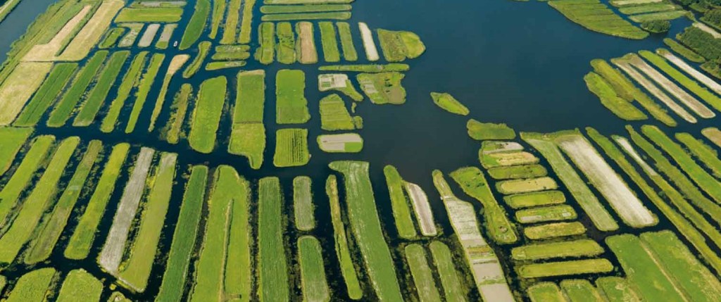 Below we will zoom into the cope model type of reclamation of the peatlands of the provinces of Zuid Holland and Utrecht. It is, however, instructive to know that in other areas different types of reclamation existed, like the drifting settlements in the provinces of Noord Holland, Friesland, and Groningen. Here, parallel with the quarrying process, villages steadily moved inward into peat areas, sometimes leaving their churches and graveyards, often situated on handmade mounds (terps), behind. This explains why you can find astray churches in the landscape today. The reason why villages were adrift is under scholarly debate. Probably, it had to do with sinking soils, rising groundwater, and growing distances between the farmsteads and the newly created arable land (Van Doesburg 2019). Another factor probably was that the cope model reclamation was designed and directed top-down by feudal counts and bishops, institutions, as we will see in a moment, whereas this was not the case in northern Frisia, where these governmental institutions were largely absent.