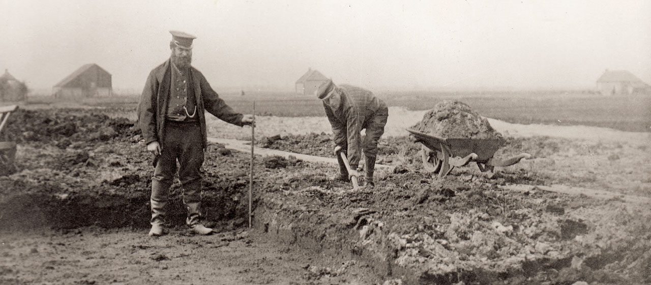 From archaeological research, we know peat cutting started in the coastal zones of what is now the coast of Flanders up to the River IJ, near the city of Amsterdam in the Netherlands, during the Early Iron Age between 700 and 500 BC. The oldest traces of peat cutting in the Netherlands have been found in the Westmadepolder (polder meaning ’embanked land’) between the cities of Rotterdam and The Hague. Calculations indicate that between 800 and 400 BC, around 40,000 cubic meters of peatland were dug out here.