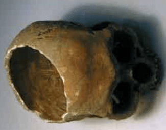 A similar example has been found at Bar Hill near the town of Cambridge in England. It is a comb made of a human skull with a hole perforated into it, dated to the Iron Age and about 2,000 years old. Possibly also used as an amulet (Enkin 2023). Much later, dated around the year 725, a part of a cranium with runes carved into it has been found at the town of Ribe in southern Denmark. It also has a hole made in it. Again it may have been used as an amulet (Barnes 2012).