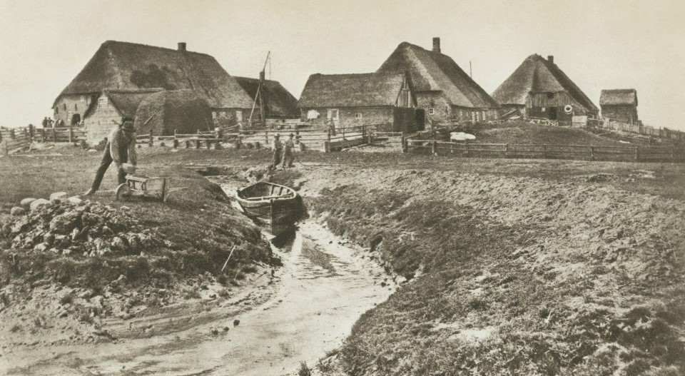 In this blog post, we focus on the terp region — a terp being an artificial settlement platform/mound. The salt-marsh terp culture existed in the northwest of the region of Flanders in Belgium, in the north of the Netherlands, in the northwest of Germany, and in the southwest of the region of Jutland in Denmark. This tidal-marshland culture is as old as 2,600 years, when the first dwelling mounds were raised. After the Romans arrived at the beginning of the Common Era, we learn the names of these coastal dwellers, of these earthmovers. It was the territory of the Frisians, called Frisii or Fresones by the Romans, in the west, and the Chauci more to the east, both living alongside the Wadden Sea coast.