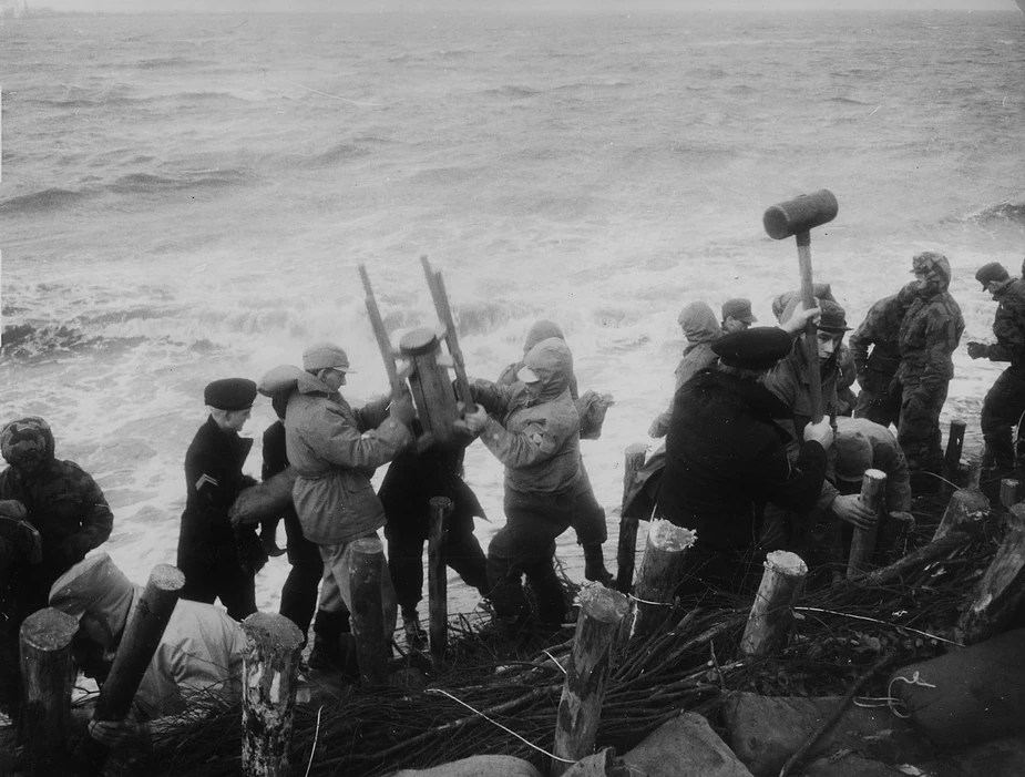 The Second World War threw a spanner in the works. Besides dykes being blasted on the peninsula of Walcheren in the province of Zeeland, and of Beemsterpolder and Wieringermeerpolder in the province of Noord Holland, and the inundation of the northeast of the province of Groningen between the towns of Delfzijl and Harkstede, maintenance of dykes had been poor during and after the war in Germany and in the Netherlands all this time. In February 1953, during a great storm surge, the dykes of the provinces of Zeeland and Zuid Holland broke. 1,836 people died during the disaster.