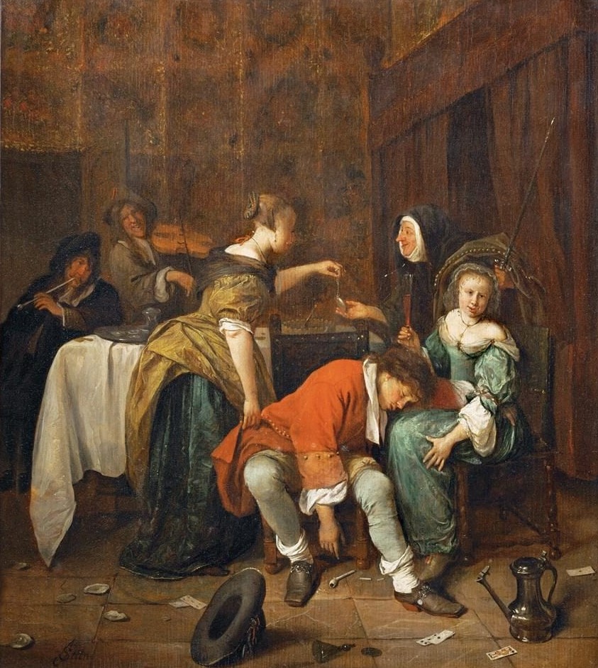 Further down in this blog post, we will elaborate on the topics just mentioned. We are even pleased, if we may say so, to meet the Devil himself and join him on a nightly city tour through the brothels, seedy inns, and shadowy taverns of late seventeenth-century Amsterdam. Together with the Devil, we will encounter two drunken Frisian skippers, each with a juffertje — a ‘little young lady’, that is, a whore — perched on his knee.