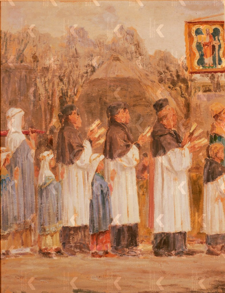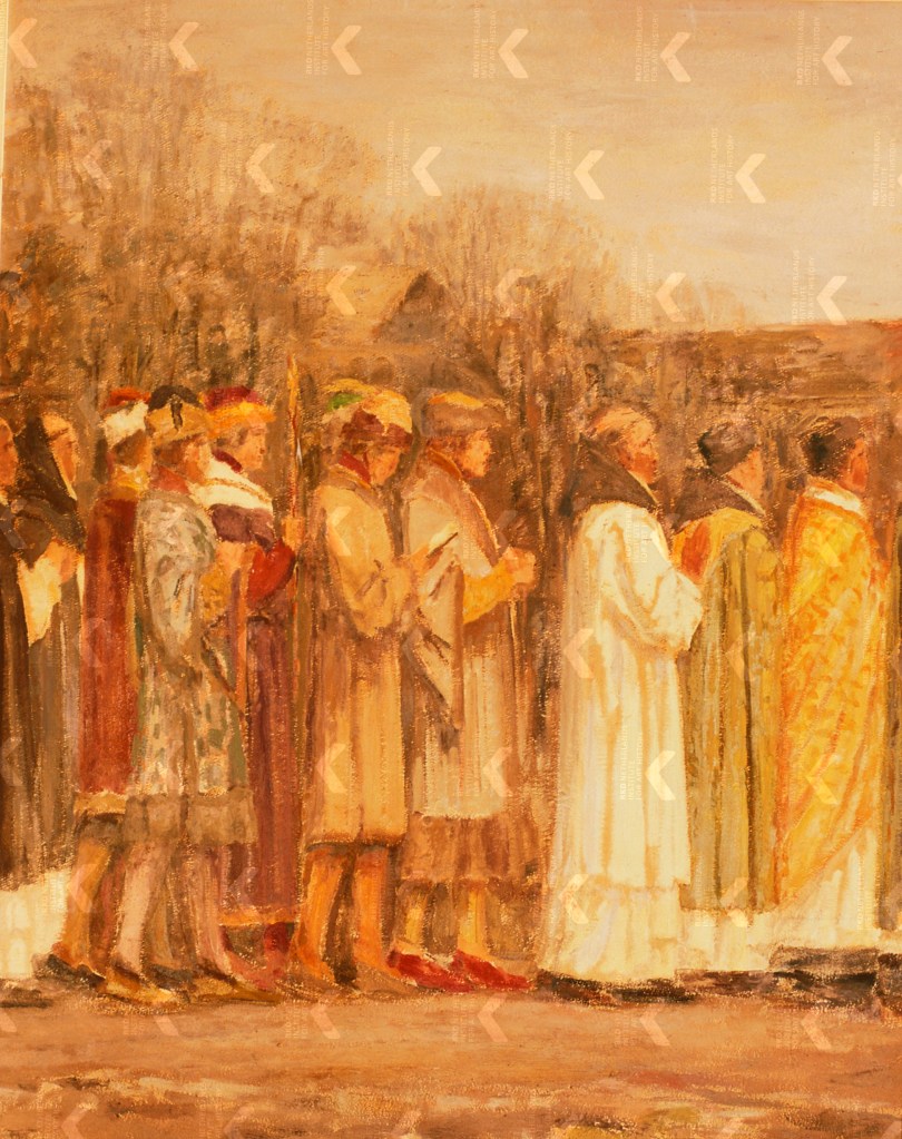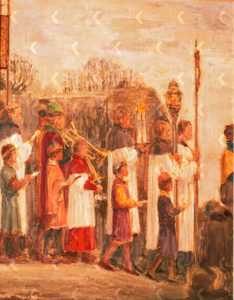 That the settlement of Bedum had become a serious religious place is also apparent from the miracle in the spring of 1214. It was the period of the crusades in which Frisian men were participating actively. Great numbers of Frisians took the Cross and fought against the so-called infidels in the Holy Land and in the Baltics, and against the Cathars — from which the Dutch word ketter, meaning heretic, is derived — in the south of France. Read our blog post Terrorist Fighters from the Wadden Sea. The Era of the Crusades to understand the atrocities Frisian men committed abroad. Anyway, that specific spring in the year 1214, Bishop Oliver of Paderborn (ca. 1170-1227) preached in the Seven Sealands of Frisia with the purpose of mobilizing as many men as possible for the fifth crusade that would be launched in the summer of 1217.