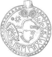 There is even a fifth-century bracteate, which are small round gold-foil medallions, imitating an Urbs Roma coin and depicting the she-wolf of Romulus and Remus together with the oldest Anglo-Frisan Futhorc inscription written on it. The runes reads ᚷᚫᚷᚩᚷᚫ ᛗᚫᚷᚫ ᛗᛖᛞᚢ. The meaning of the first word is unsure, maybe a formulaic battle cry. The other two words read maegae medu meaning ‘kinsmen meed’ hence ‘reward for a relative’. An alternative translation of maegae medu is ‘kinsmen’s consent’. This after a similar expression maga gemedu in the epic poem Beowulf, of which we will come to speak later, meaning ‘kinsmen’s consent (Briggs 2014).