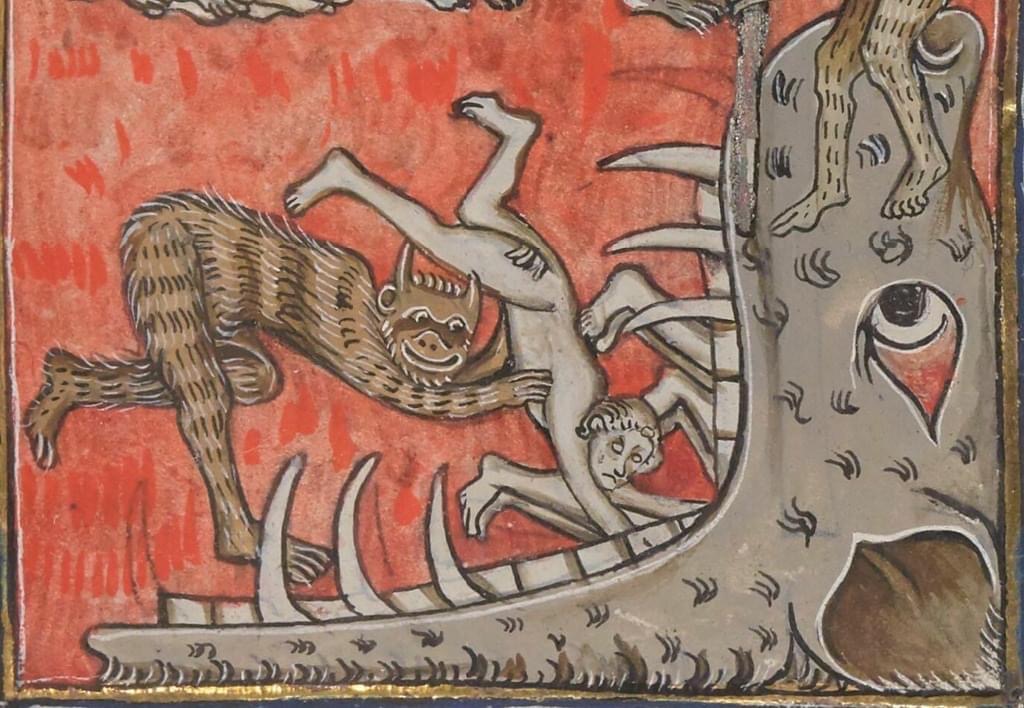 In the medieval European imagination, the wolf was not merely a predator of flesh but a devourer of souls — a boundary creature between life, death, and the afterlife. To be eaten alive and torn apart by wolves was considered a fate worse than death, for a dismembered body could never be resurrected on Judgment Day (Leneghan 2022). It is therefore fitting that the very gates of hell were envisioned as the gaping jaws of a wolf (Smeyers 2023).