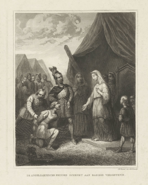 King Hermegliscus ruled the Warnians and was married to the sister of King Theudebert I (ca. AD 504-548) of the Frankish kingdom of Austrasia. Procopius does not mention the name of the wife of Hermegliscus, but this might have been Theudechild (Van der Aa et al. 1874, Lugt 2021). It was Hermegliscus’s second marriage because of the early death of his first wife. From his previous marriage, he had a son named Radigis. His son was to be married to the daughter of the king of the Angles in Brittia. We will name her Ella from now on, after a poem by writer Willem Bilderdijk (1765-1831), because Procopius neglected to record her name. Indeed: “A girl has no name” (Arya Stark, Game of Thrones), but this aside. Procopius did mention that this marriage provided the Warnians with strategic allies, both the Angles and the Franks. With the Franks, they shared the Lower River Rhine as their border. In other words, it was a freoðuwebba, literally meaning ‘peace-weaver’ (Pollington 2011).