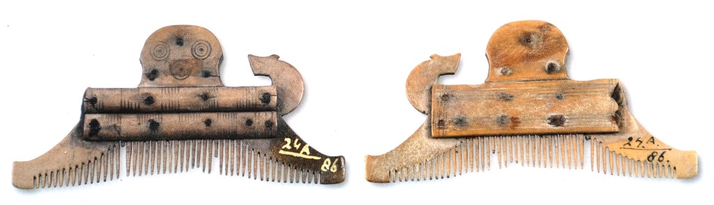 Typologies of early-medieval combs are based on provenance, age, material (antler, bone, ivory, wood, etc.), shape (symmetrical or asymmetrical), decoration, and construction (barred, composite, single- or double-sided). However, these classifications rarely reflect differences in function — aside from general grooming purposes. Combs were used for head hair, beards, and moustaches, whether to enhance appearance or manage lice. In some cases, they may also have served decorative or ritual roles.