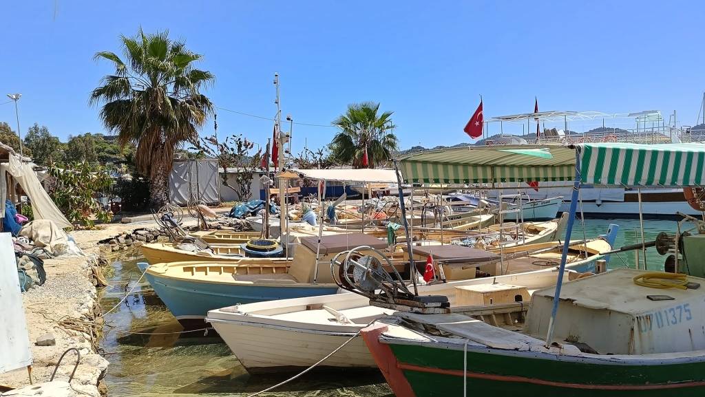Üçagiz is a small and friendly touristy village with a marine for mainly tour boats and ferries to the towns of Kaş, Kale and sometimes to the city of Demre. But also for yachts and some small fishing boats. They say they catch lobster in the waters along the coast. Caught with diving and sometimes with traps. Clearly the tourist season has not started yet because the little restaurants on shore are nearly empty. The bastard stayed in the Ekin Pansyion in the west side of the village. Straight at the trail of the Lycian Way. With the lovely, bit noisy sea only ten meters away from his window.