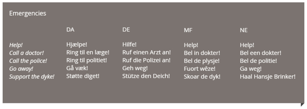 Please find below an utterly unnecessary yet possibly helpful collection of useful — and useless — phrases for those hiking the Frisian Coast Trail. For the purists and diehards who insist on surviving without the aid of Google Translate, ChatGPT, Reverso Context, or any other linguistic lifeline, we proudly present this service. At the very least, it should help you order your plate of seal or porpoise with a side of samphire for dinner, or perhaps a raw herring with fried peewit eggs for breakfast. Enjoy!